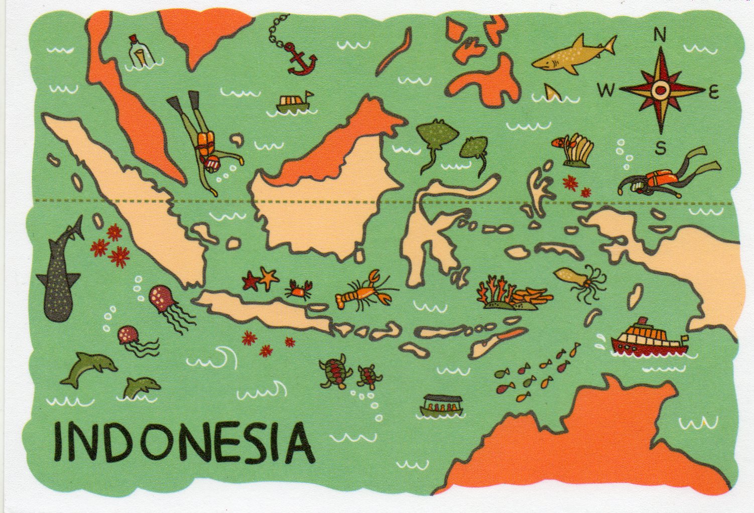 To moje kolejne, 95 już państwo z którego mam przynajmniej jedną pocztówkę z mapą. Indonezja położona jest na kilkunastu tysiącach wysp, od Sumatry po Nową Gwineę. Jawa to najbardziej zaludniona z indonezyjskich wysp. Piękny, równikowy, pełen różnorodności kraj. Jest licznie odwiedzany przez turystów i ... wulkanologów. To region pełen wulkanów, położony na pacyficznym pierścieniu ognia.